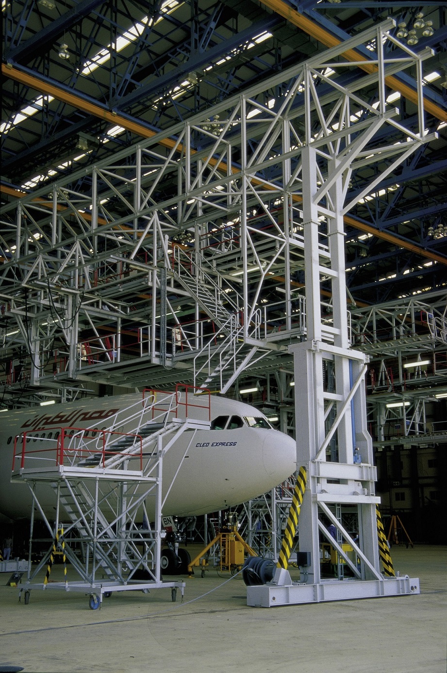 應(yīng)用圖例: Mero Airporttechnik 高性能蝸輪絲杠升降機(jī),用于調(diào)節(jié)飛機(jī)維修平臺(tái)的高度。